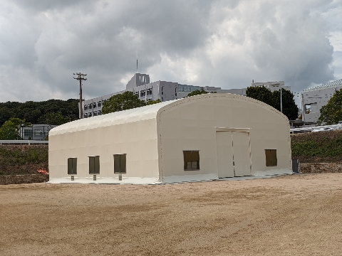 2025年8月に神戸高専グラウンド敷地内に新設した施設「ロボット製作場」の工事記録写真(一部)です。
