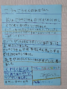 その後「神戸高専のことを詳しく教えてくれてありがとうございました。」と施設見学のお礼(ポスター)と心のこもったお手紙をいただきました。