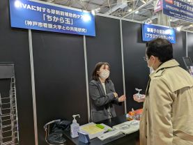 神戸市看護大学[外部リンク]と神戸高専による共同研究として、穿刺を補助するケア用具「ちから玉」を展示しました。看護現場での活用を目指し、研究開発を進めています。