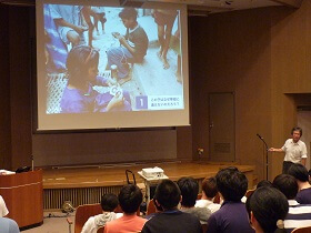 ![]() 世界一大きな授業は2010年から福井教授が毎年取り組んでいる国際理解教育です |