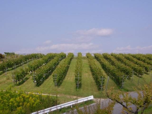 教員も一息 ワイン用の畑です