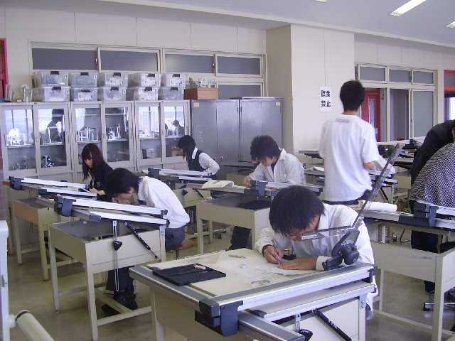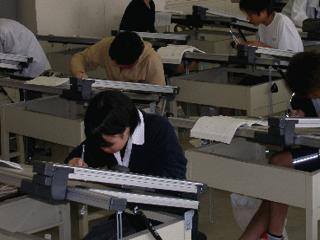 設計製図授業風景(女子学生も図面とにらめっこ)