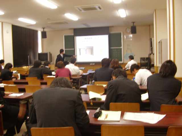 中間発表の様子 発表後、教授陣から鋭い質問を浴びせられます。