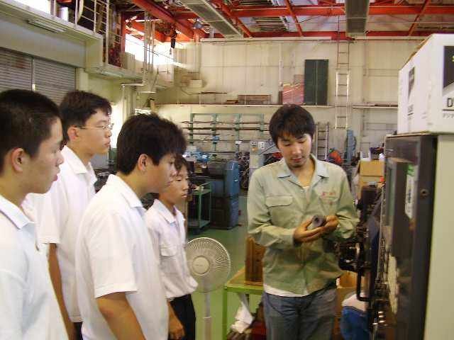 機械加工の研究室 実際に学生がNC旋盤を動かして見せる