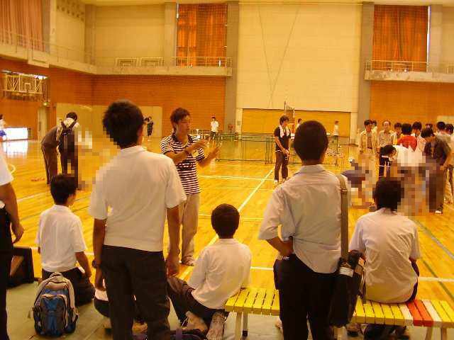 レスキューロボットの紹介(保護者も参加しています) ロボットも暑さに参った、、木陰で休憩