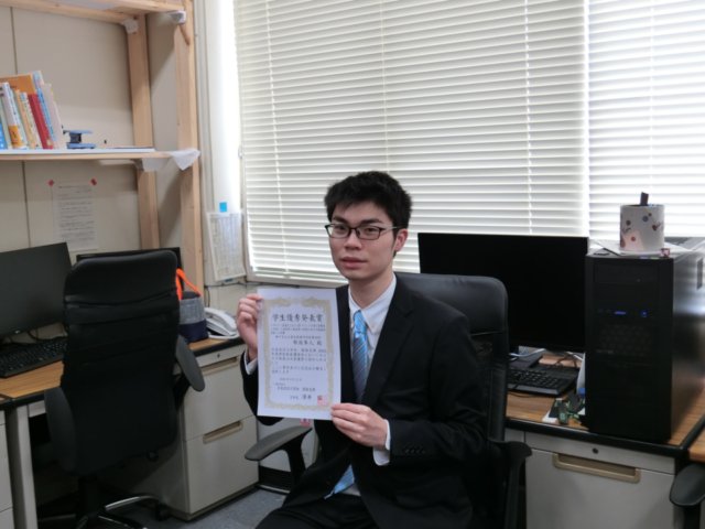 機械システム工学専攻の学生は研究が評価され学会で表彰を受けています