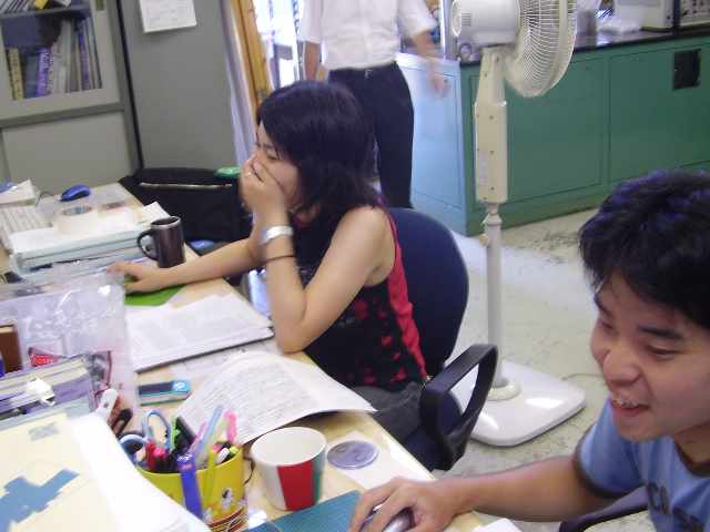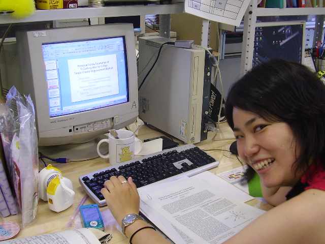 研究室にて(左:専攻科生 渡辺君) ピースV(^-^)v!