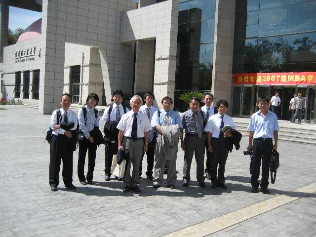 (電光掲示板に) 熱烈歓迎!! ハルピン工業大学にて記念撮影