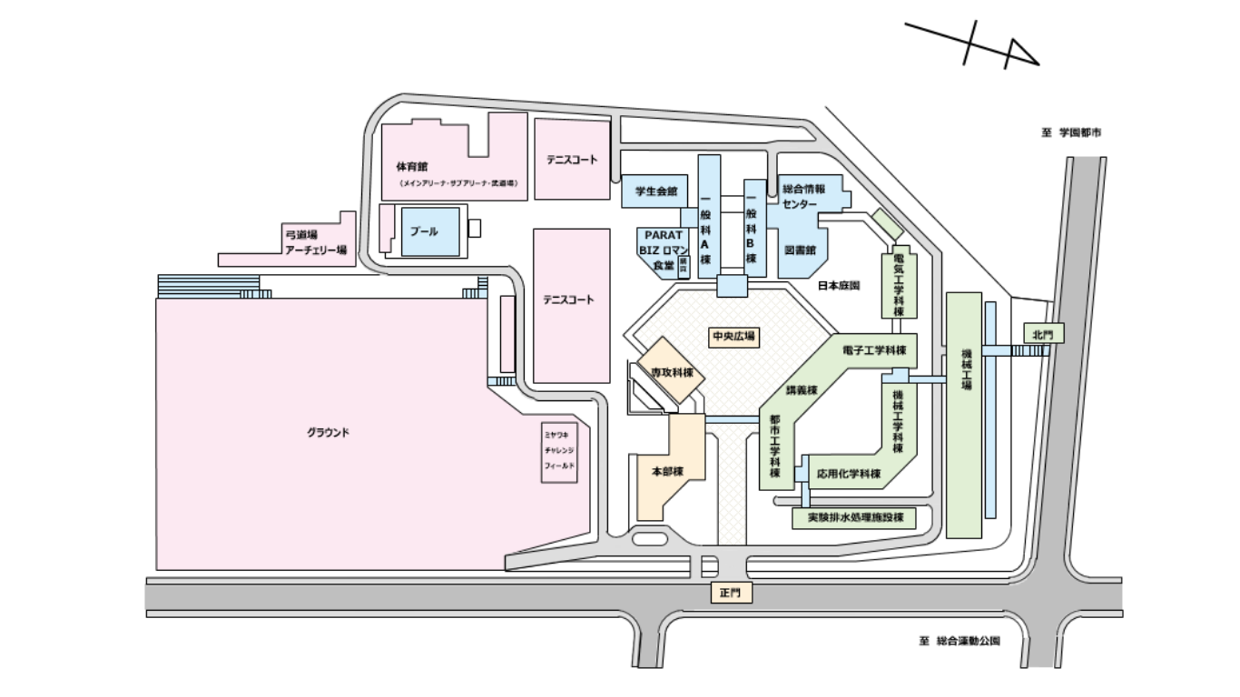 神戸高専のキャンパスを4つのエリアに分けて紹介しています。